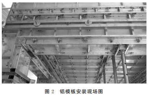 在工程施工正式开始之前,施工人员利用BIM技术,对每一种类型的装配式部件进行模拟组装,并根据施工过程以及预制配件的实际尺寸、形状,对铝模板进行裁剪,确保铝模板的形状符合施工现场现浇作业标准。这样不仅能够保证现浇部件的参数精度,还可以省去在施工现场裁剪模板的过程,节省了大量时间,确保每一块铝模板都能够紧密地连接在一起。施工人员对预制部件进行吊装以及拼接,在确定预制部件已经安全就位之后,对梁体以及墙柱进行绑扎,同时进行铝模板的安装以及校正工作,如图2所示。