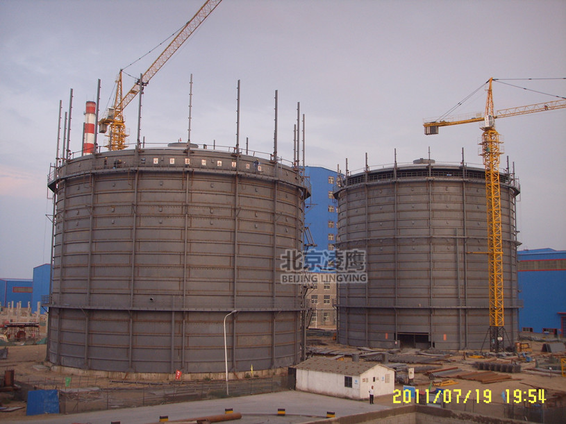 顶板的安装:将预制好了的顶板对称铺在罐内中心架与角钢圈上。顶板焊接时,先焊内侧接头,后焊外焊缝,宜采用间隔焊对称施焊方法,并由中心向外分段退焊,焊接顶板与包边角钢时,焊工应对称均匀分布,并应沿同一方向分段退焊,且焊接电流不能过大。